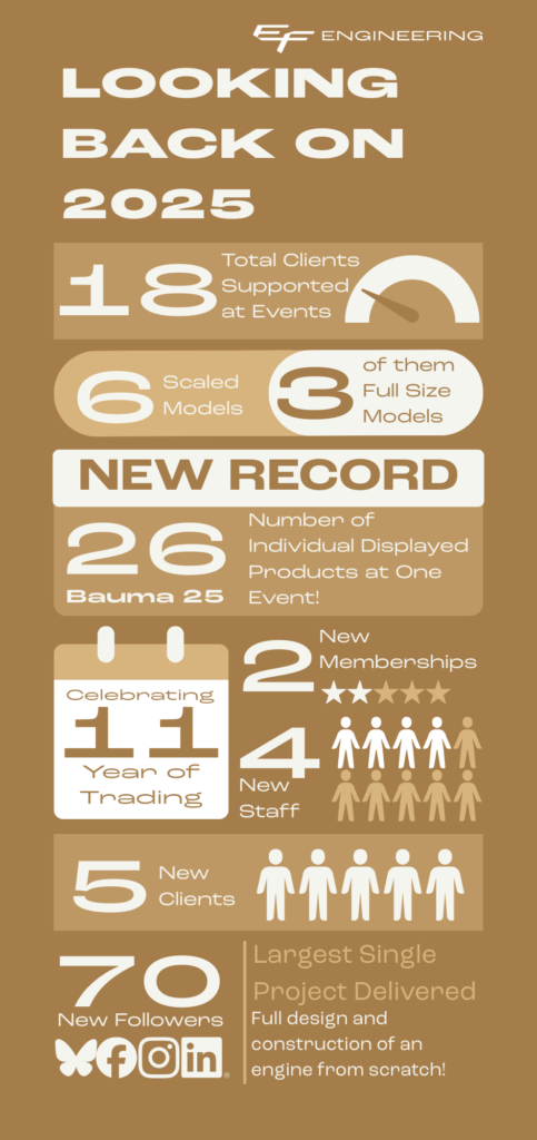 As we reach the end of 2025, I wanted to take a moment to reflect on what has been an exciting and transformative year for EF Engineering. We’ve supported clients at shows all over the world, strengthened our in-house capabilities, and prepared the foundations for a major brand refresh coming in 2026.