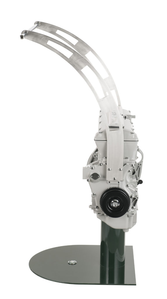 Our team then engineered custom metal arms and a tailored base, transforming the engine block into a stable and fully functional structure. The whole display was then mounted on a specially designed column stand that would enable it to function as a coat stand. Components were painted, re-chromed, and finished to preserve the engine’s distinctive features while elevating it to a premium, furniture-grade aesthetic.